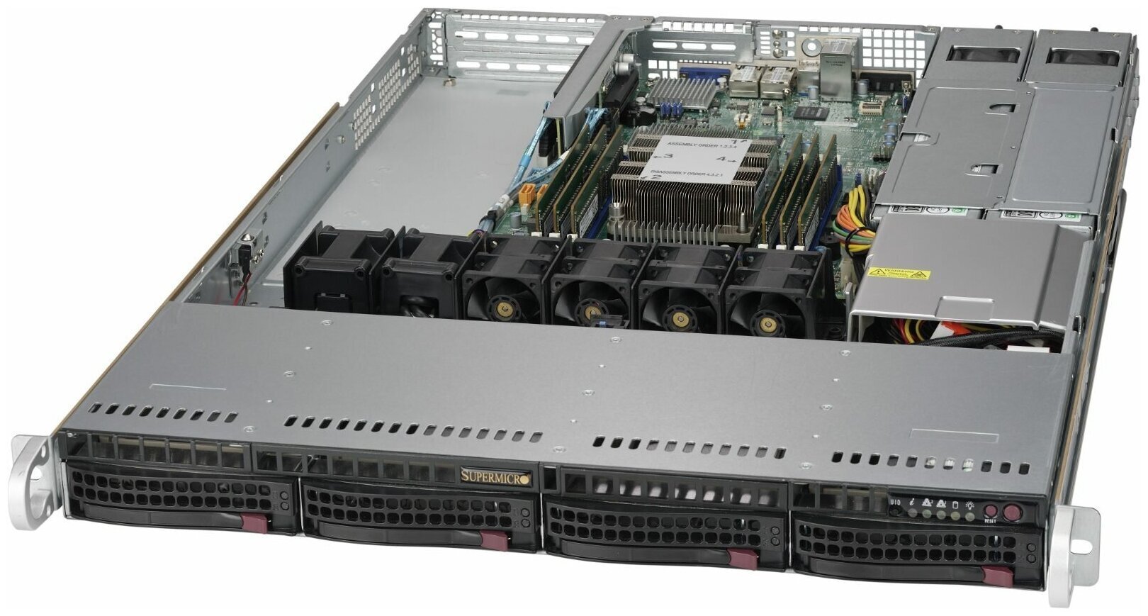 Сервер Supermicro SuperServer 5019P-WTR без процессора/без ОЗУ/без накопителей/количество отсеков 3.5" hot swap: 4/1 x 500 Вт/LAN 10 Гбит/c